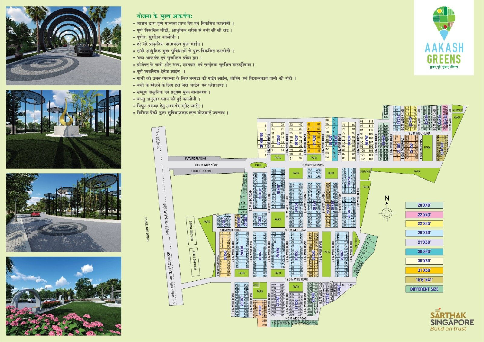 Aakash Greens isn’t just a place to live—it’s a thriving community where 15+ theme-based gardens, concrete roads, partial underground electricity, and 24×7 security come together to create a harmonious lifestyle.