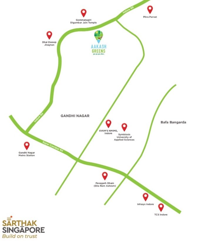 Located just minutes away from iconic landmarks like the Gommatgiri Digambar Jain Temple, Dhai Dweep Jinayatan, and Pitra Parvat, Aakash Greens is a tranquil escape that is steeped in spirituality and heritage. With premier institutions such as Symbiosis University and NMIMS Indore a mere 5 minutes away, it’s an ideal address for families prioritizing education and growth.