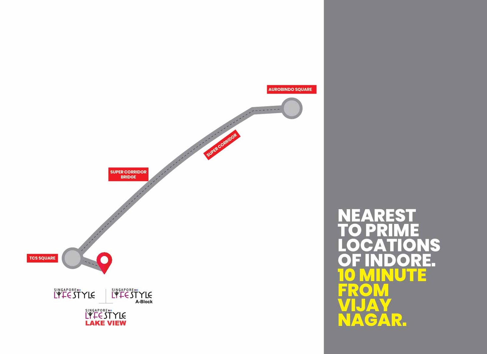 Developed by Sarthak Singapore Group, Sarthak Singapore is a residential township that offers residential plots with pre-attached amenities. It is located near International Airport, Super Corridor, Indore. The project was completed in march 2018, and possession of plots is going on. Some big commercial and residential projects are located in Super Corridor. It is one of the most developed areas in Indore. Some excellent schools, super-specialty hospitals, fine restaurants, and big shopping malls are situated in proximity to this location. It is a newly built project and is surrounded by ample greenery.