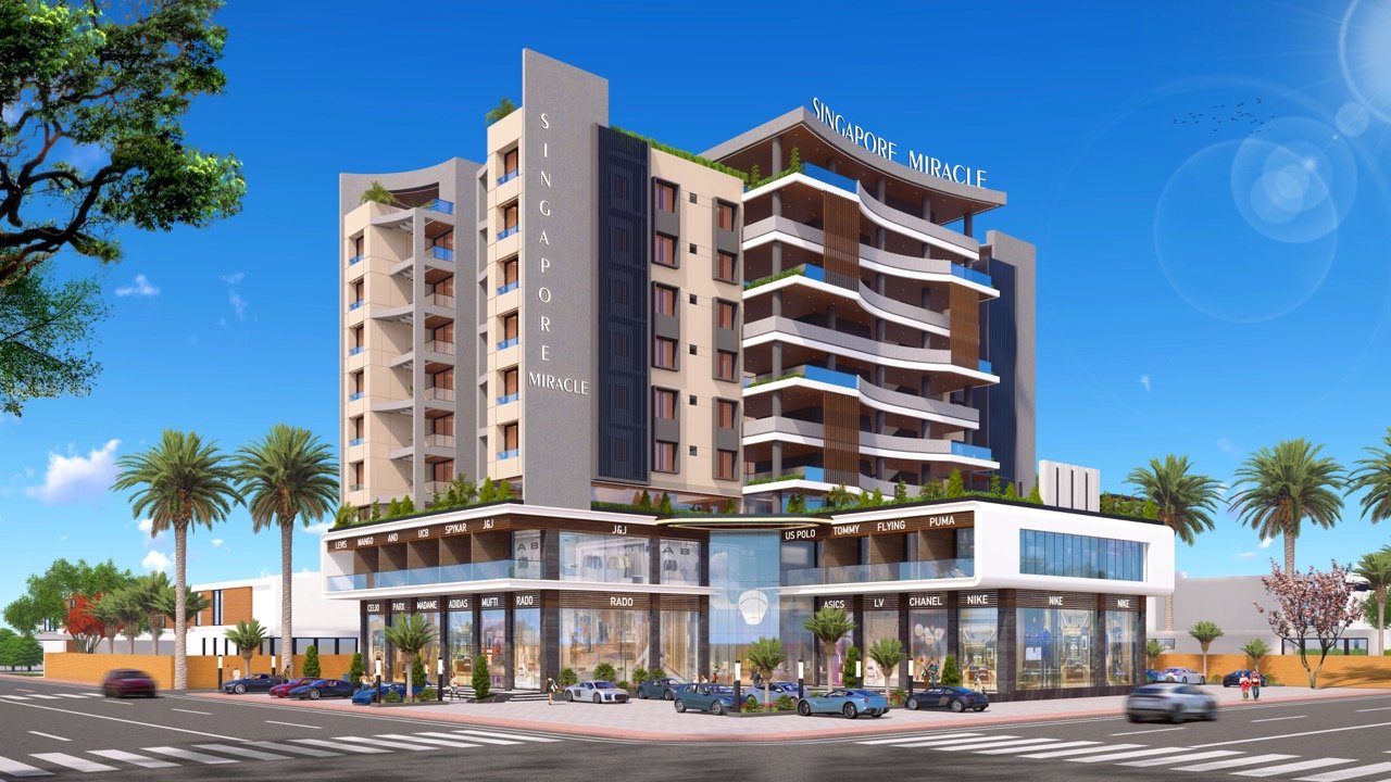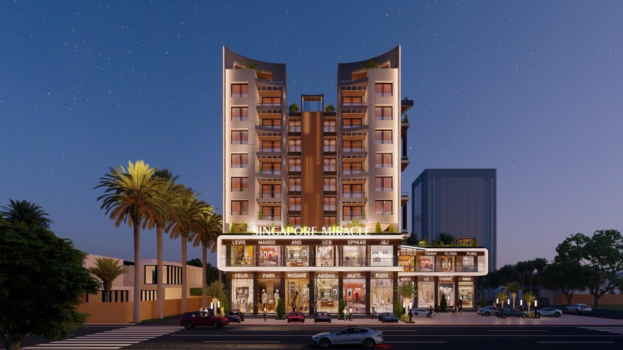 Welcome to Singapore Miracle – a blend of luxury living and premium retail in the heart of the city. Featuring spacious apartments, double-height showrooms with top global brands, and world-class amenities like a swimming pool, gym, kids’ play area, and lush green spaces, it redefines modern living. With a grand entrance lobby, high-speed elevators, and ample parking, every detail ensures comfort and sophistication. Perfectly located at the city center, Singapore Miracle offers the best of urban convenience and serene living in one iconic destination.